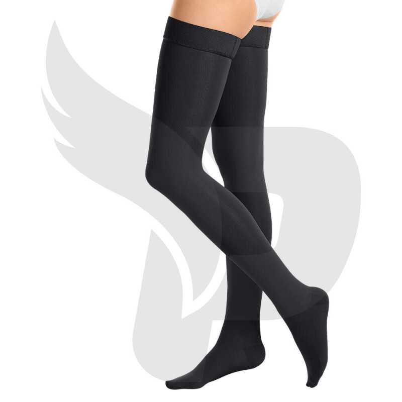 Media suave con ompresión graduada 15-20 mmHg, 20-30 mmHg. Talla: small, mediun, large, xlarge, xxlarge. Fabricado con elastano de alta calidad para proporcionar una compresión precisa, consistente y duradera. Sistema patentado clima fresh con efecto antibacteriano. Gracias a los materiales transpirables que absorben la humedad, las medias están diseñadas para usarse todo el día brindando una máxima comodidad. Forma anatómica. Banda de sujeción de silicona 100% hipoalergénica. Libre de látex.