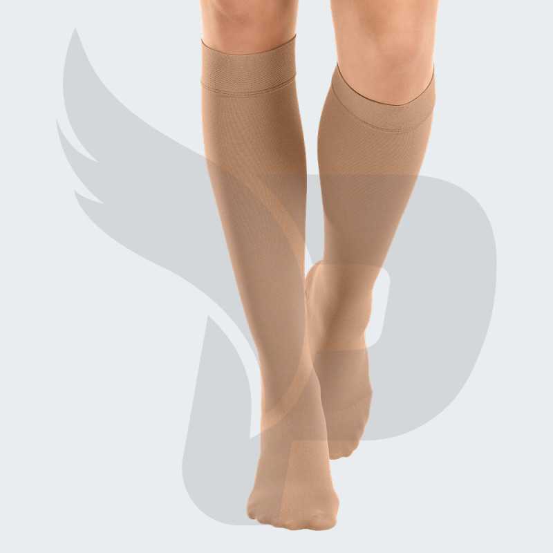 Media suave con ompresión graduada 15-20 mmHg, 20-30 mmHg. Talla: small, mediun, large, xlarge, xxlarge. Fabricado con elastano de alta calidad para proporcionar una compresión precisa, consistente y duradera. Sistema patentado clima fresh con efecto antibacteriano. Gracias a los materiales transpirables que absorben la humedad, las medias están diseñadas para usarse todo el día brindando una máxima comodidad. Forma anatómica. Banda de sujeción de silicona 100% hipoalergénica. Libre de látex.