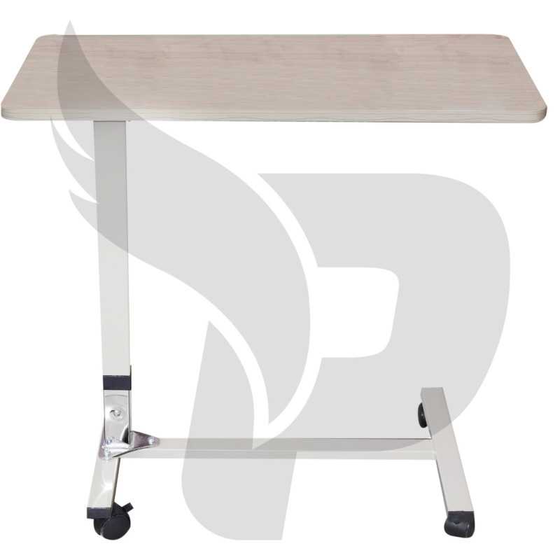 Material: Estructura de acero inoxidable y laminada de fibra de madera. Largo: 76cm. Ancho: 38cm. Altura máxima: 109cm. Altura mínima: 79cm. Soporta hasta 20 kg. Superficie plana, fácil de limpiar. Bordes redondeados. Ajuste de altura. Base en forma de H. Cuenta con 4 ruedas giratorias cada una con freno.